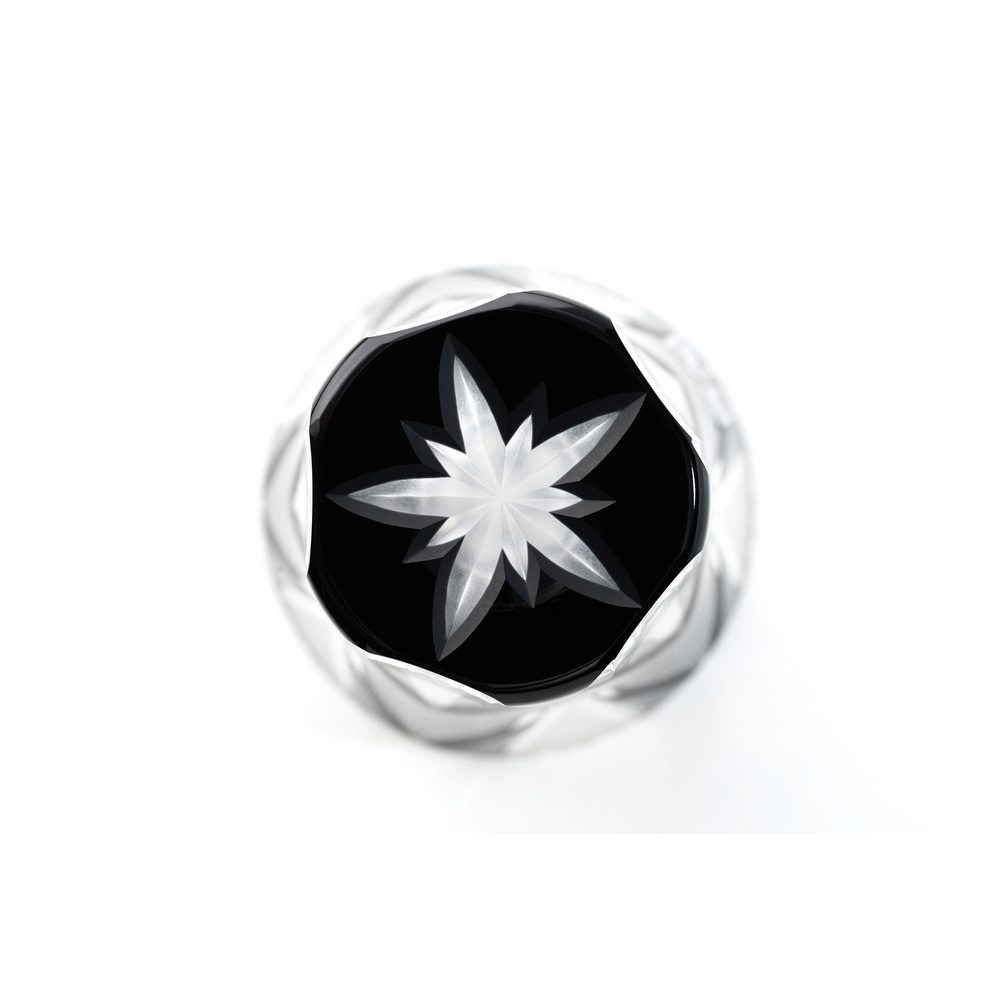 Изделие изготовлено в традиционной технике Эдо Кирико — гравировка выполняется на тончайшем слое цветного стекла с использованием алмазных инструментов, после чего каждая грань вручную полируется. Особую ценность представляет глубокий черный цвет: мастера Tajima Glass первыми в Японии разработали уникальную технологию создания сверхтонкого черного стекла, на 0,3 мм тоньше, чем в других мастерских. Из-за сложности работы гравировка выполняется практически «на ощупь», что требует исключительного мастерства и увеличивает время производства втрое. При взгляде сверху на дне стакана раскрывается звезда — символ надежды, здоровья, богатства и светлого будущего.